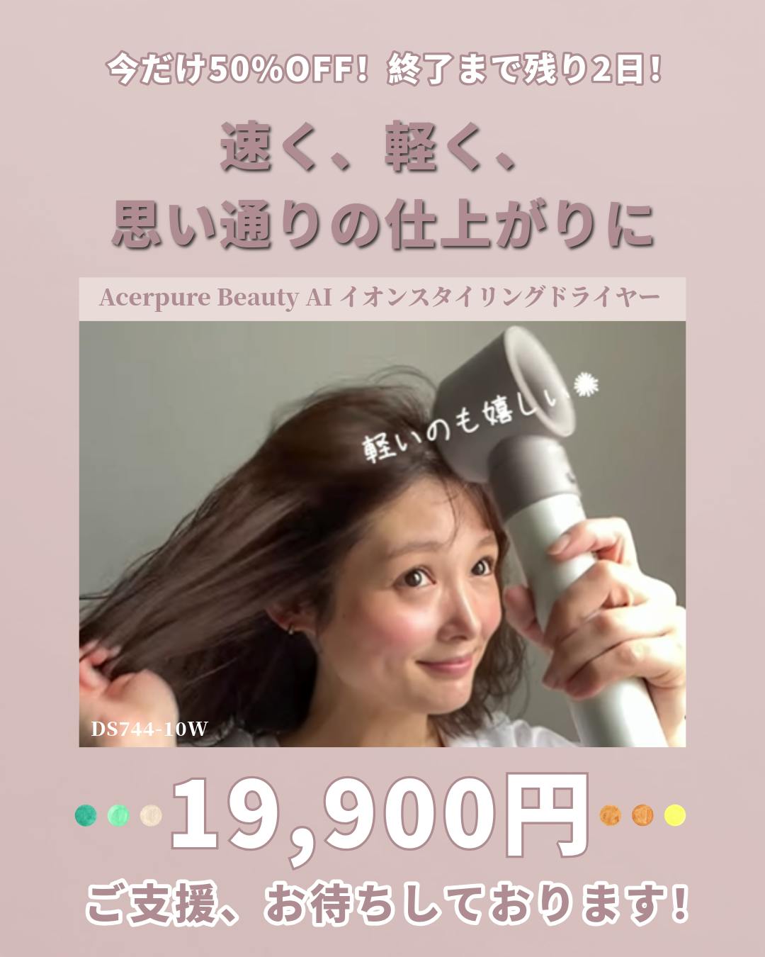 AcerpureのAIドライヤーは、ハイスピードモーター搭載で、約3分でしっかり乾く速乾力。