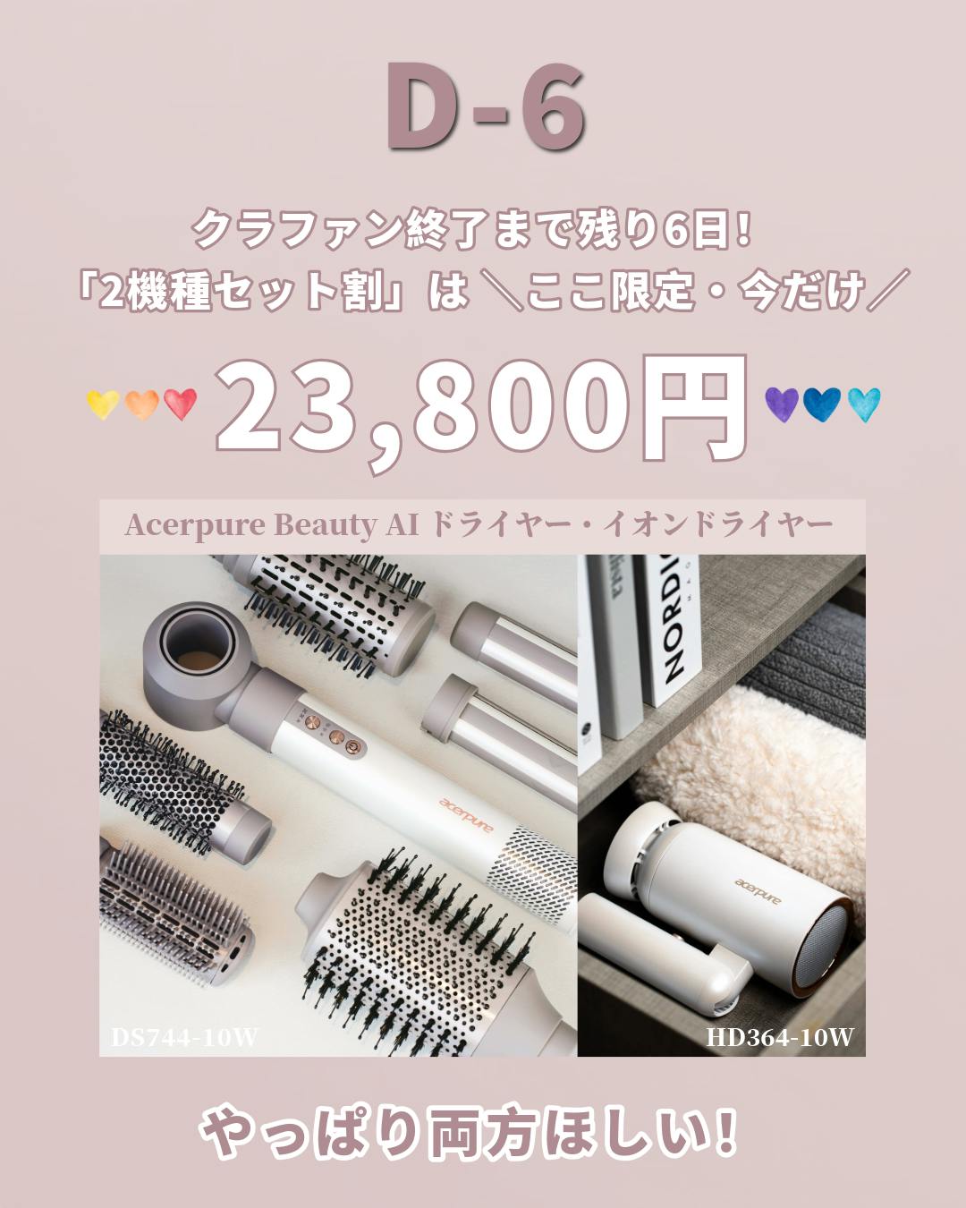 ストレートもカールも、ゆるふわも――思い通りのスタイルが、自宅で手軽に再現できます。それは7種類のアタッチメント付き、AcerpureのAIドライヤーです。中でも注目は、風の力で髪を巻きつける「オートラップカーラー」。左右巻き対応で、内巻きも外巻きも簡単に決まります。忙しい朝も、プロの仕上がりに。その他にも、→速乾に特化したクイックドライノズル→毛先にボリュームを出せるエアーボリューマイザー→前髪専用のカーリーブラシ など、シーンに応じて使い分け可能。乾かすだけじゃない。整える、仕上げる、魅せる。この1台で、日々のスタイリングが変わります。クラファンは6月30日まで。残り3日、どうぞお見逃しなく。▶詳細・ご支援はこちら