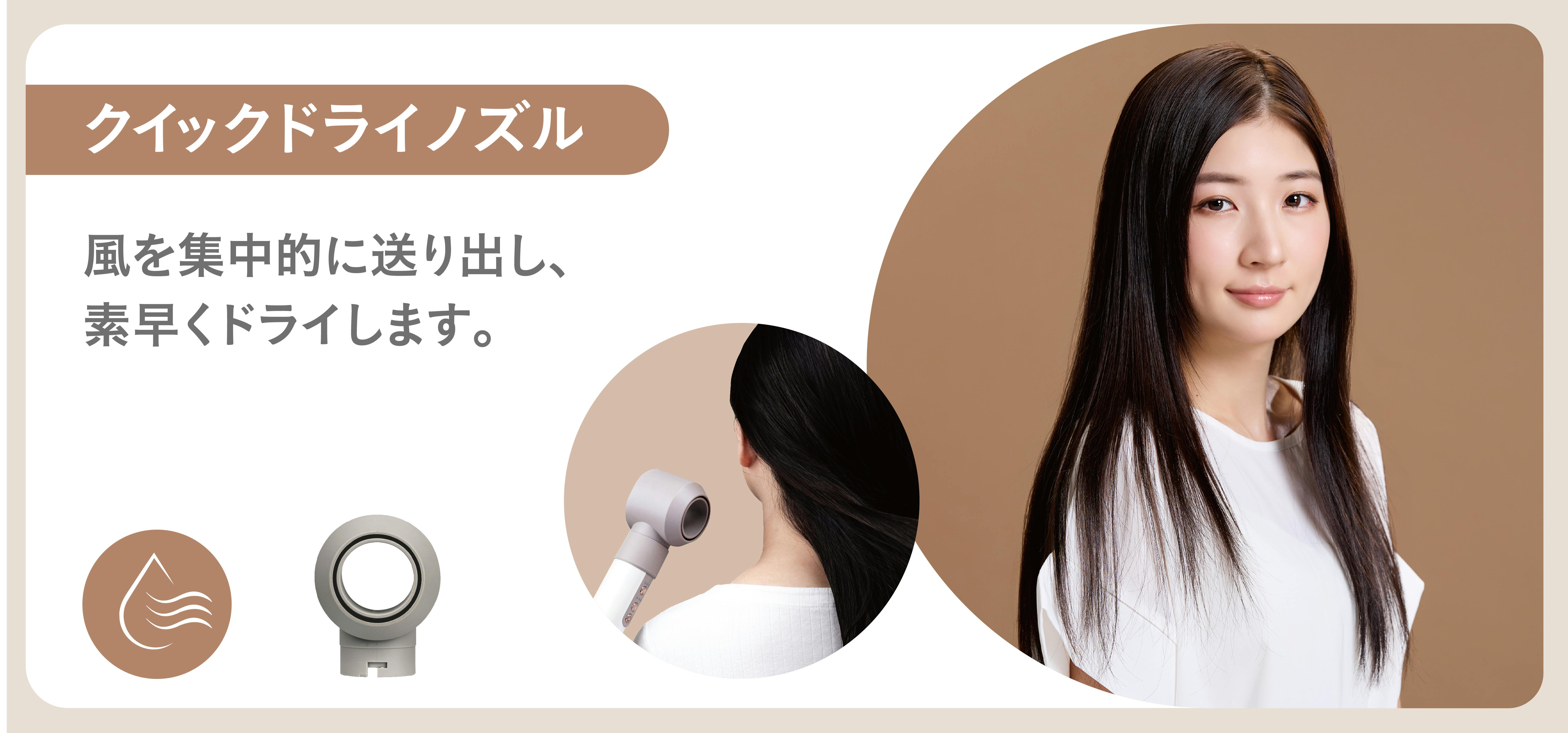 特に「オートラップカーラー*」は、風の流れを利用して髪を自動で吸い寄せ、簡単にカールが作れる画期的なアタッチメント。忙しい朝でも手軽にセットが可能です。