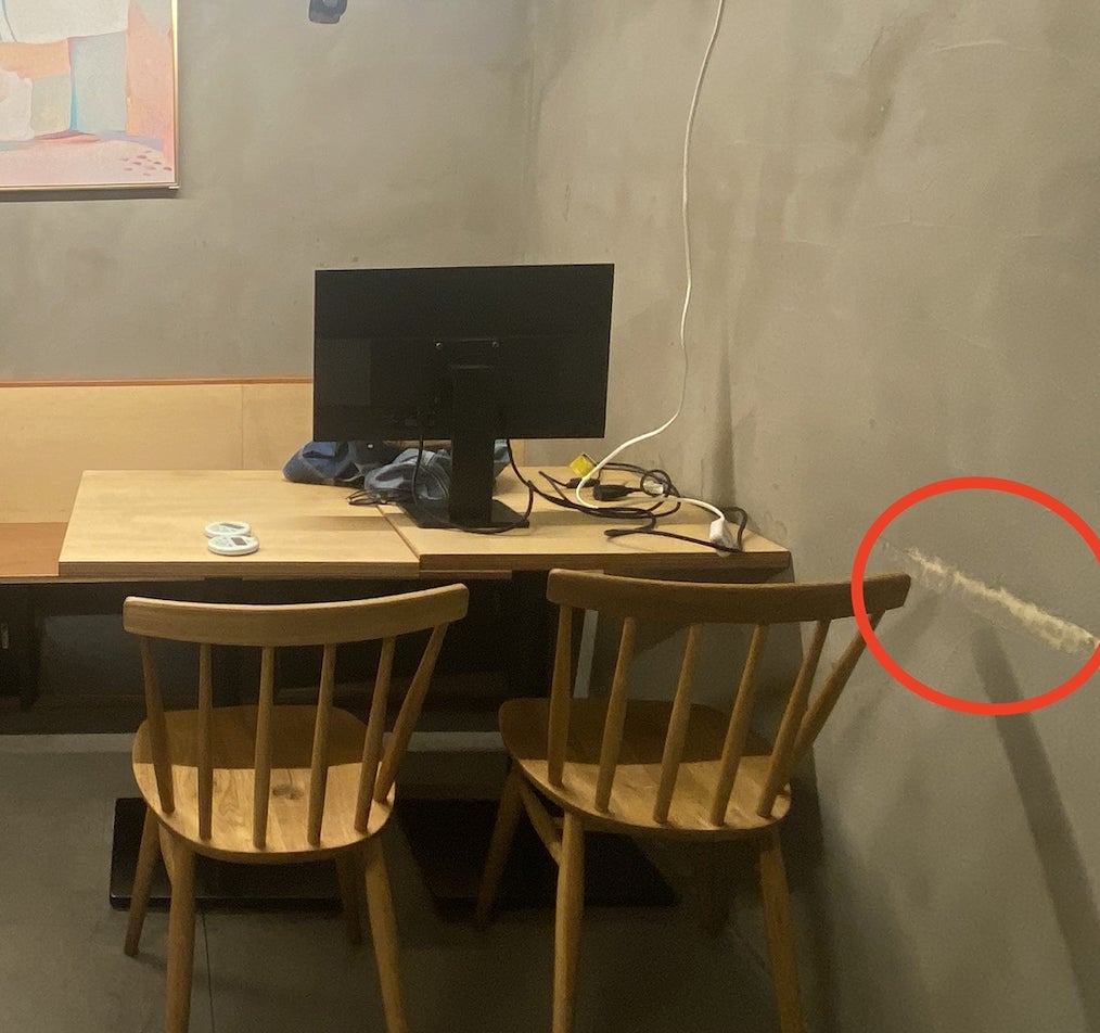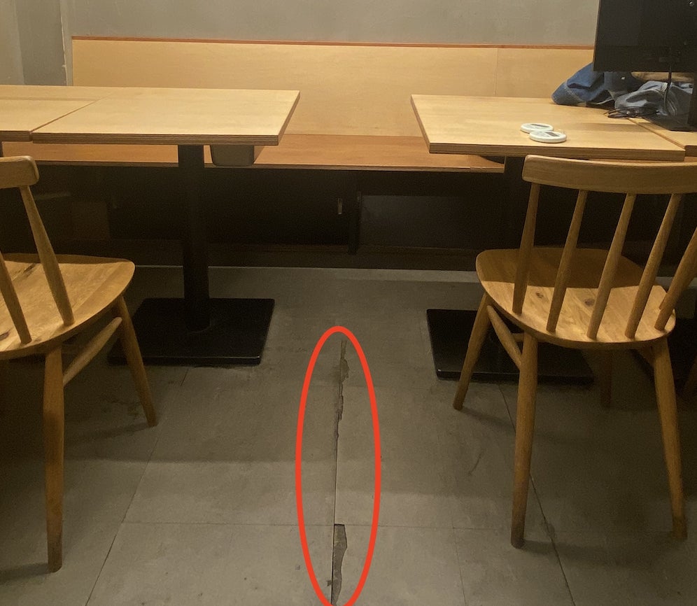 ▲テーブル席下収納スペースの破損