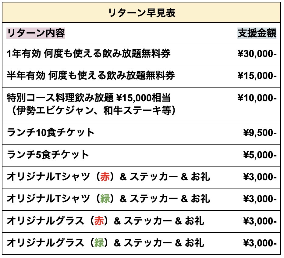 ◾️リターン内容