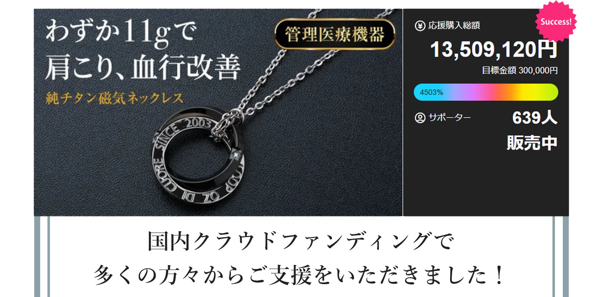 2026/01/22 10:36皆様お世話になっております。この度、たくさんの再販してほしいとの声をいただき純チタン磁気ネックレスPURE LOOPリングタイプのアンコール開催が決定しました!前回のプロジェクトで見逃していた方、購入を忘れていた方などもう一度お得に購入できるチャンスです。ご興味のある方は宜しくお願いします。詳しくはこちらhttps://camp-fire.jp/projects/912770/preview?token=2w4yobsq&utm_campaign=cp_po_share_c_msg_projects_show もっと見る