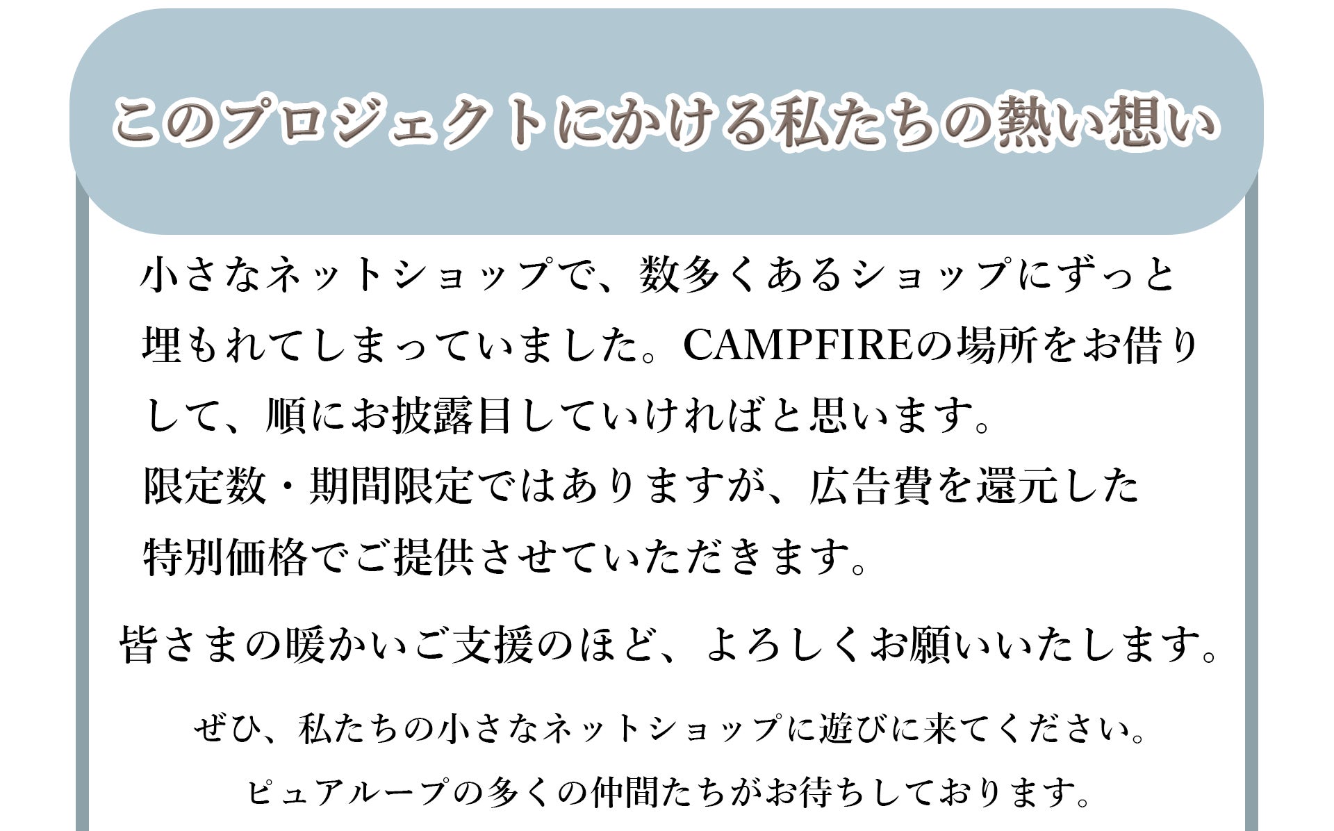 皆さまの厳しく暖かいご支援のほど、よろしくお願いいたします。