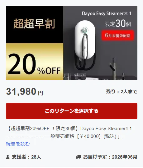 【いち早くDayoo Easy Steamerをお手元にお届けする「先行発送」】です!