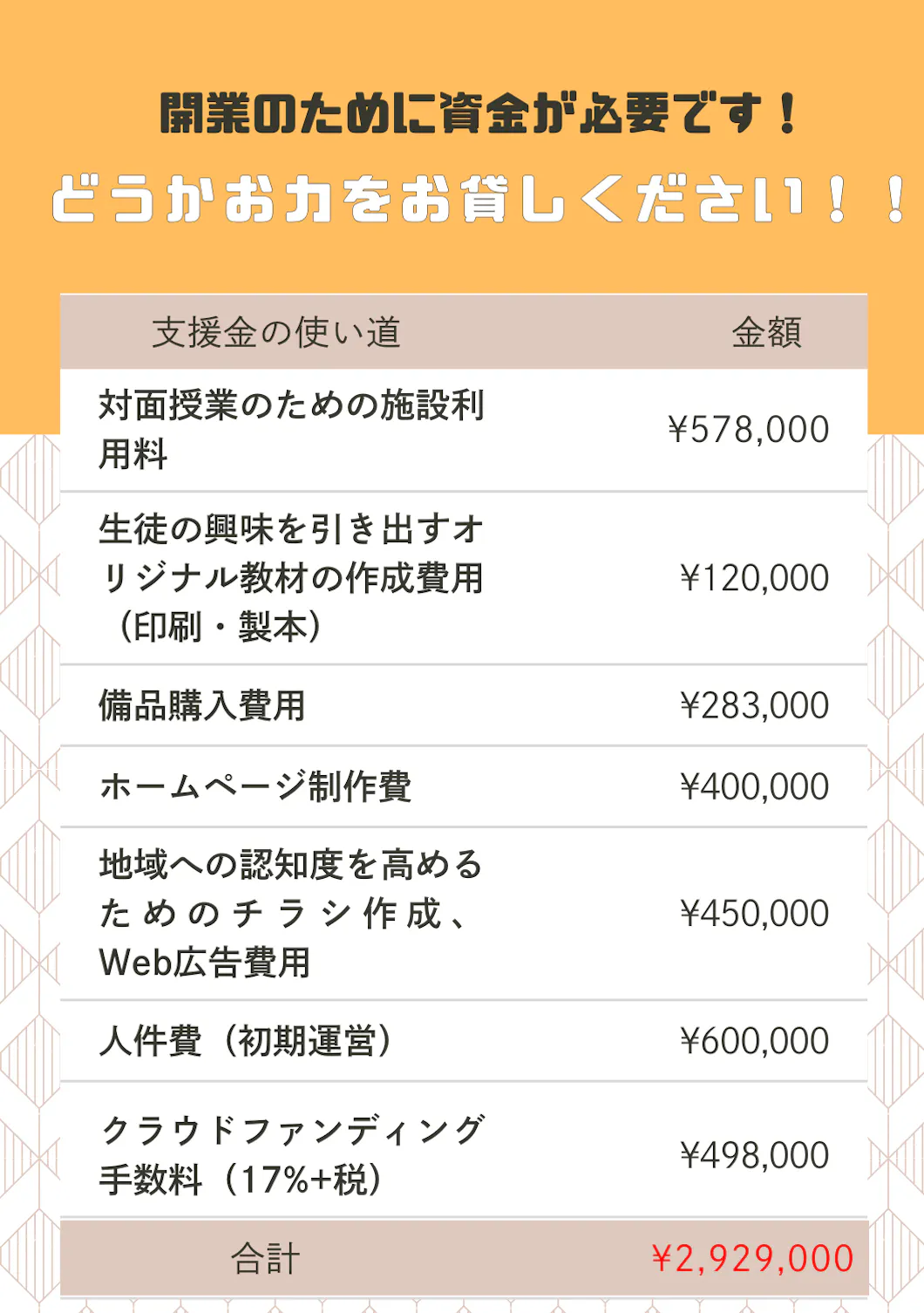 ・対面授業のための施設利用料: 578,000円(地域の学習スペース賃料、初期設備費用など)