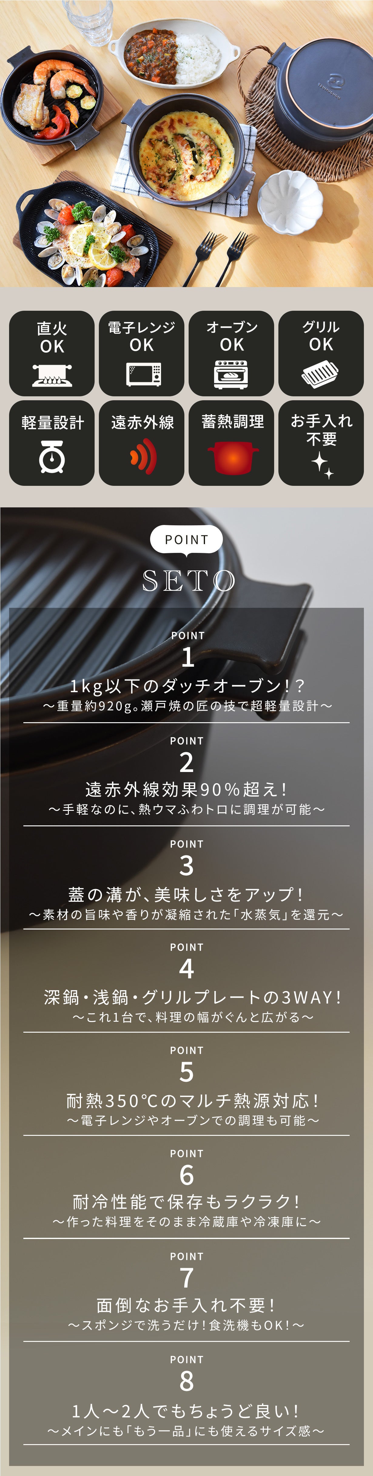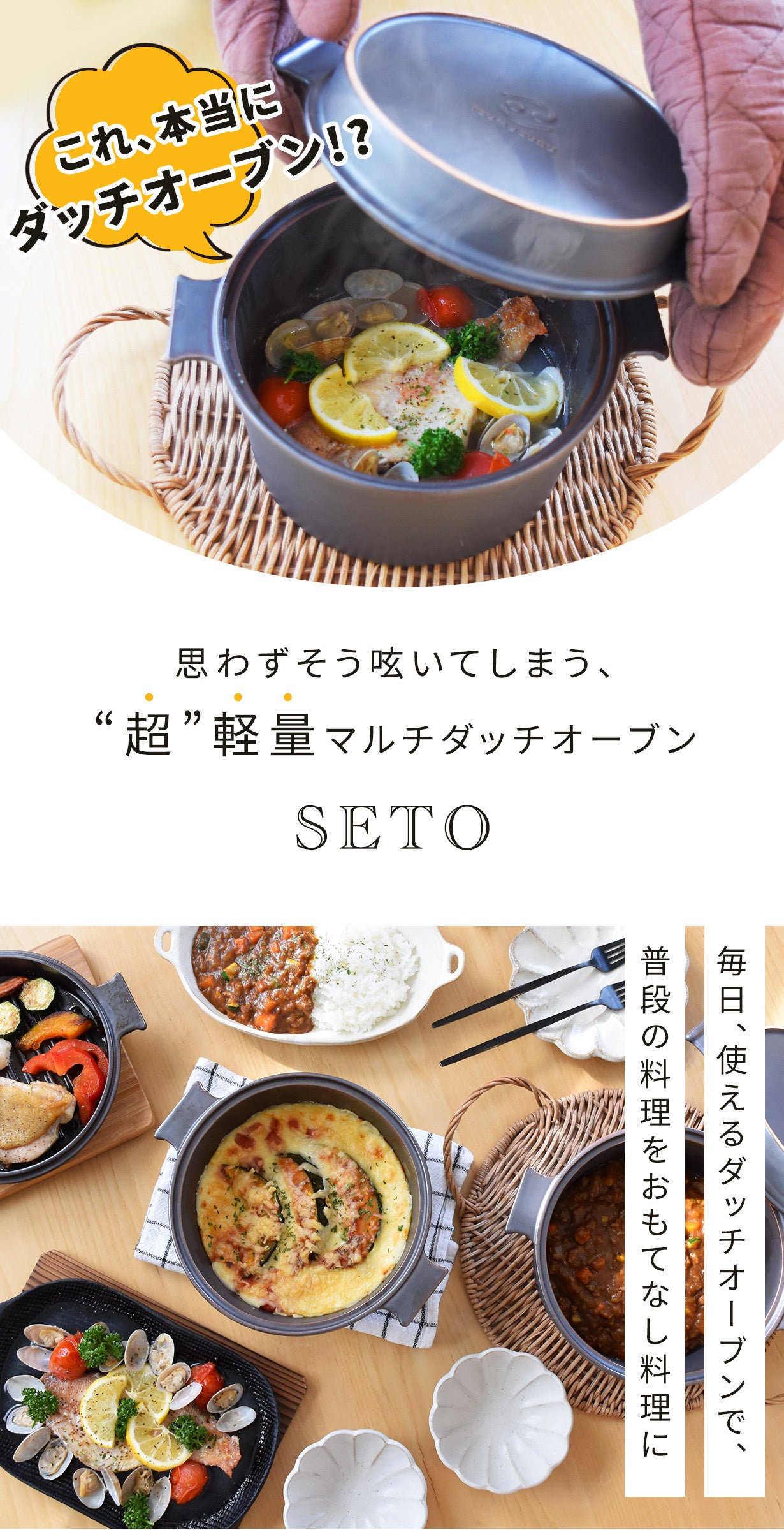 「マルチダッチオーブンSETO」1台で、料理の幅もグンと広がります。