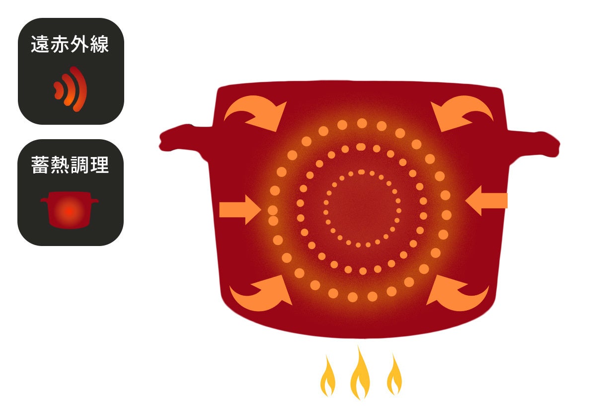 加えた熱の90%以上を、遠赤外線に変えて鍋肌から放出します。