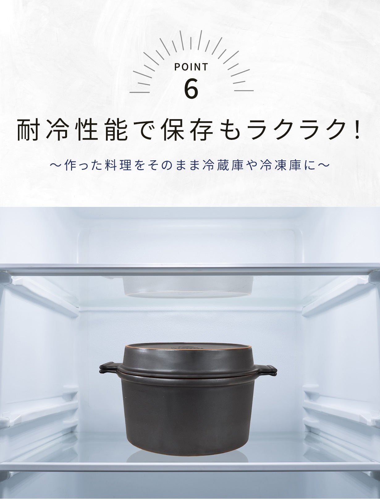 急速な温度の変化でもひび割れの心配がないので、そのまま冷蔵庫や冷凍庫での保存が可能です。