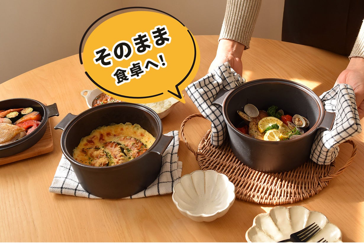 「マルチダッチオーブンSETO」は、瀬戸焼の耐熱セラミックスを使用することで、高温での調理も可能に。