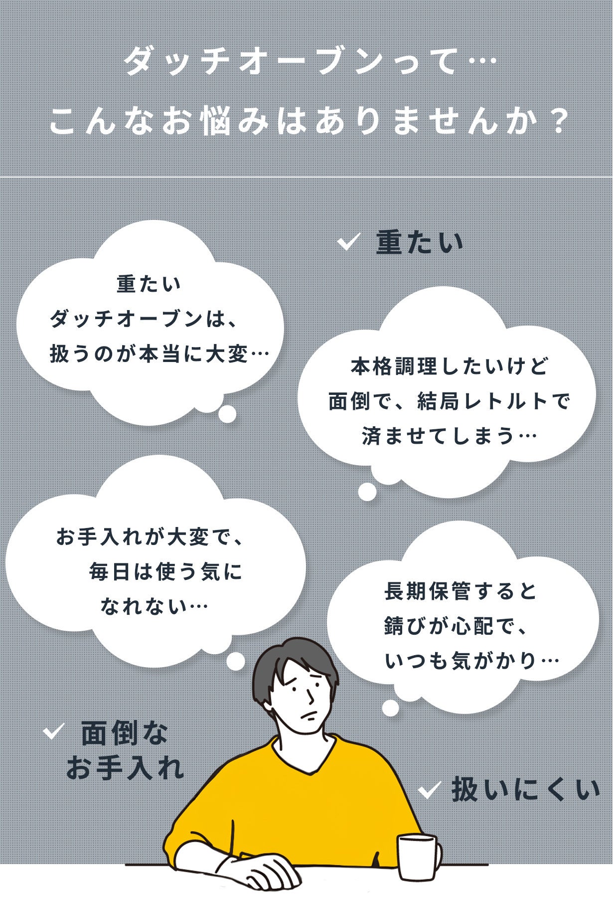 デパートで調理器具売場を見ると、「これを購入すれば自分にも美味しい料理が簡単にできる」ような気がしませんか?しかし、意を決して購入した有名ブランドの鍋は、重くて扱いづらかったり、普段のちょっとした料理には出番がなく、押し入れに収納されてしまう…