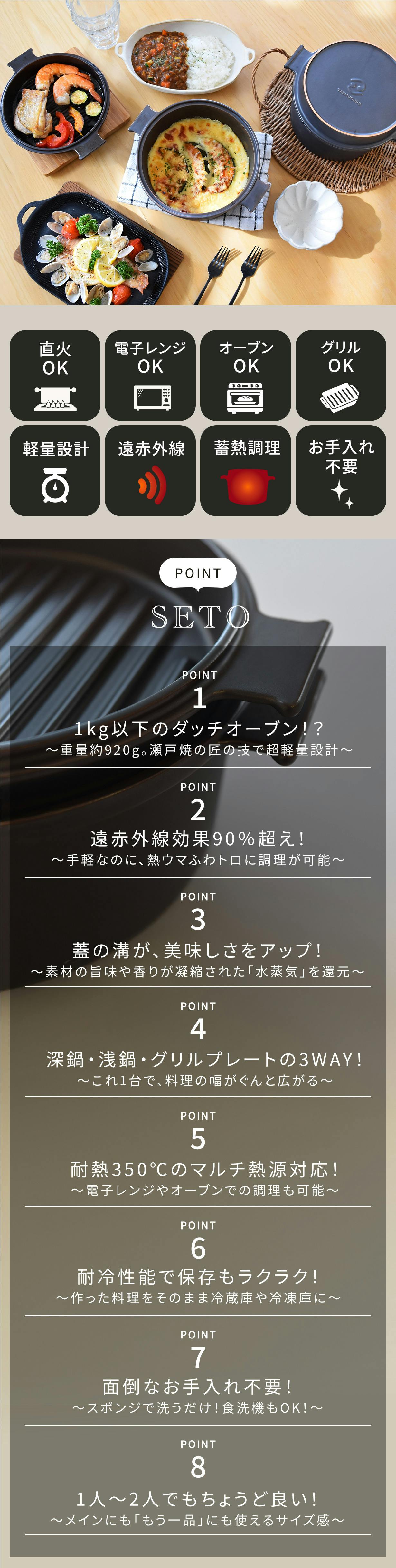 「マルチダッチオーブンSETO」は、瀬戸焼の耐熱セラミックスを使用することで、高温での調理も可能に。