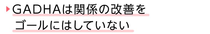 LPやリーフレットを見て「仲直りを支援する団体なのか」と感じられた方も居るかもしれません。しかし、GADHAは関係の改善をゴールに設定しません。GADHAが目指すのは、自他のニーズを知ろうとし、ケアしようとする人になることです。