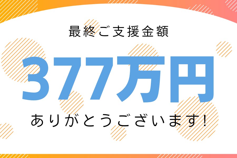 最終ご支援金額は3,778,750円となり、本当に多くのご支援を頂き感謝しきれません。代表含め、チーム一同、心より感謝しております。本当にありがとうございます。