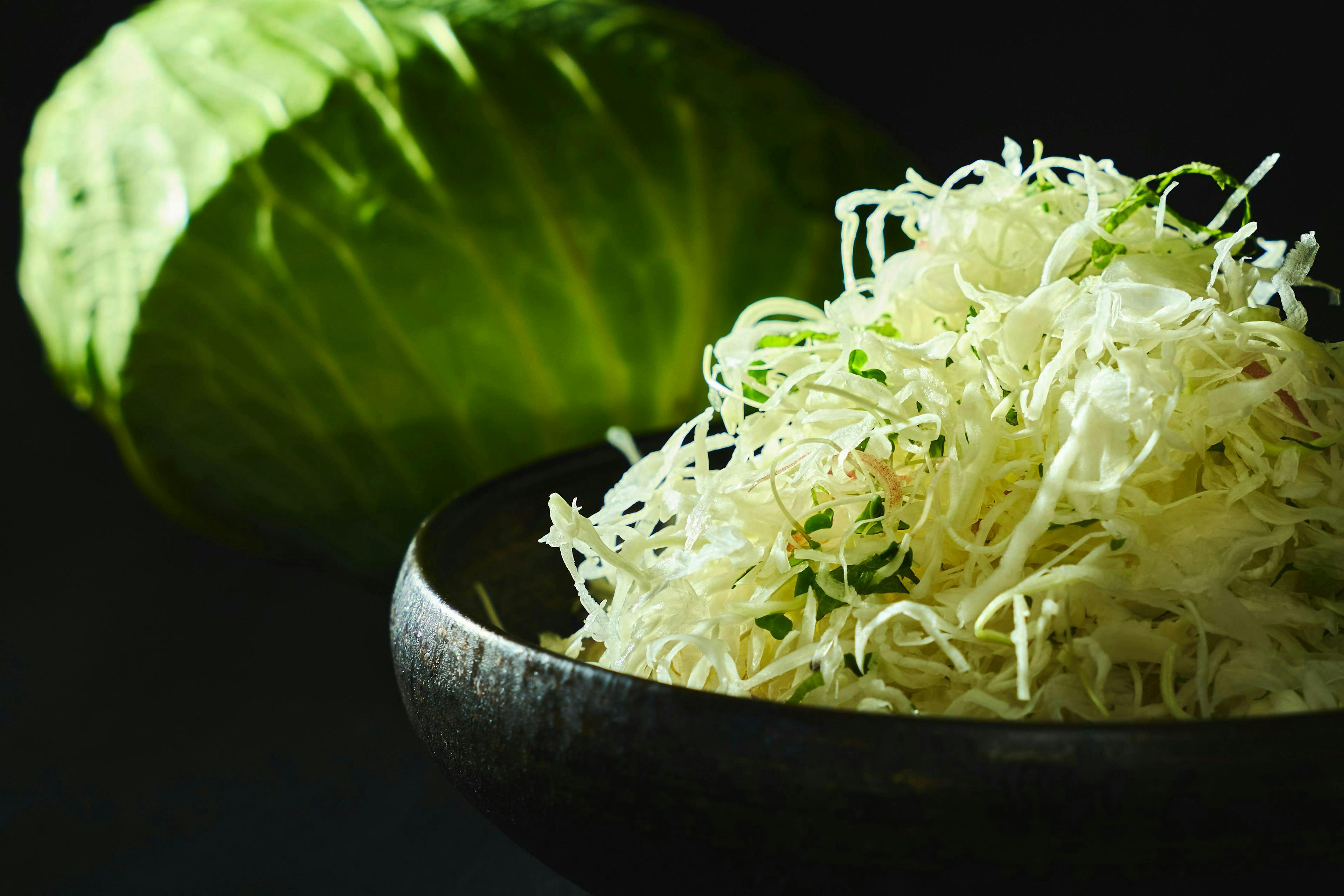 細切りにしたキャベツに、香味野菜を絶妙なバランスで加えることで、味わいに奥行きと、豊かな香りをプラスしました。