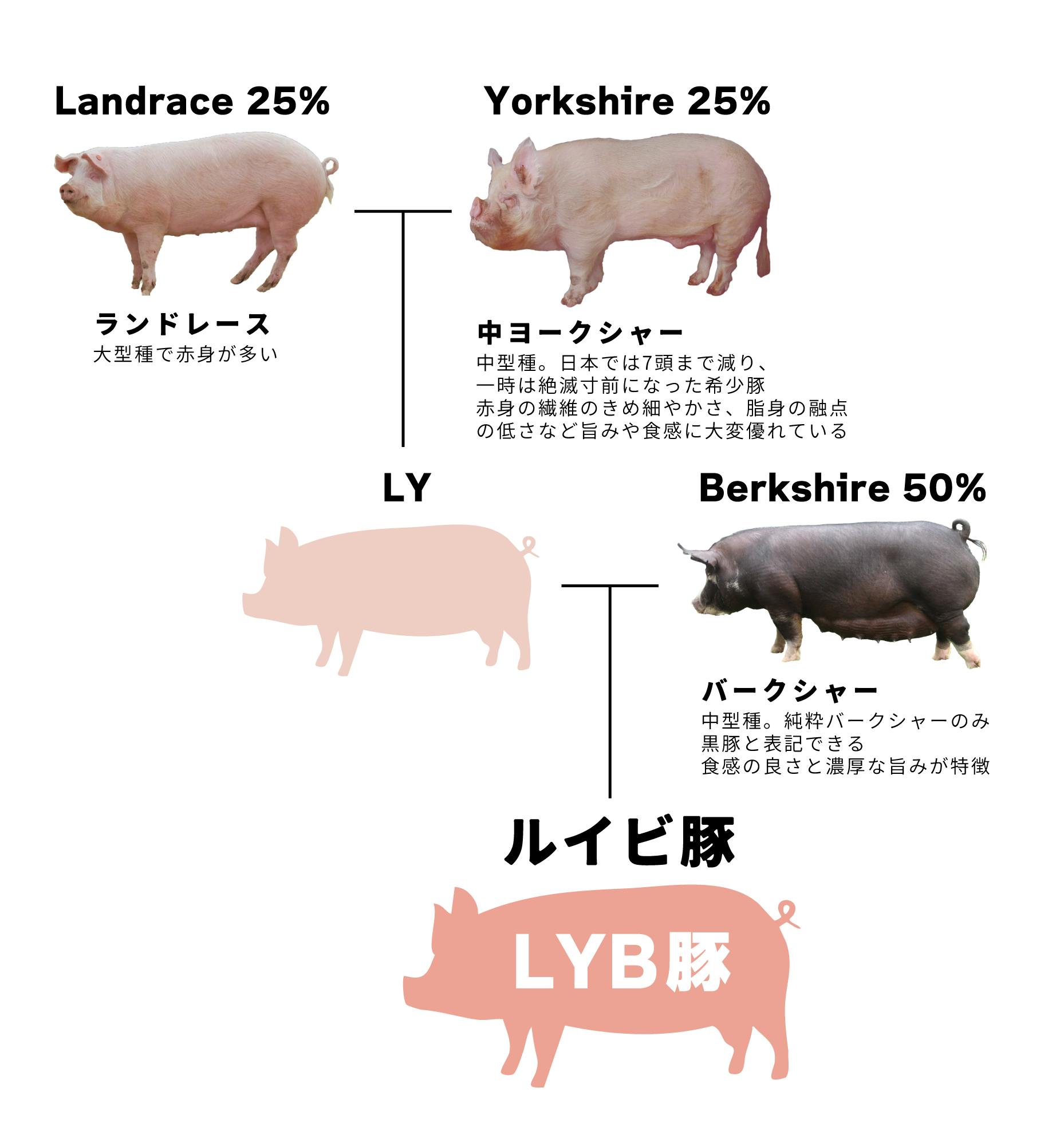 ルイビ豚(LYB豚)は、静岡県富士宮市の「富士農場サービス」で育てられている、年間出荷数わずか約1,000頭という非常に希少な銘柄豚です。