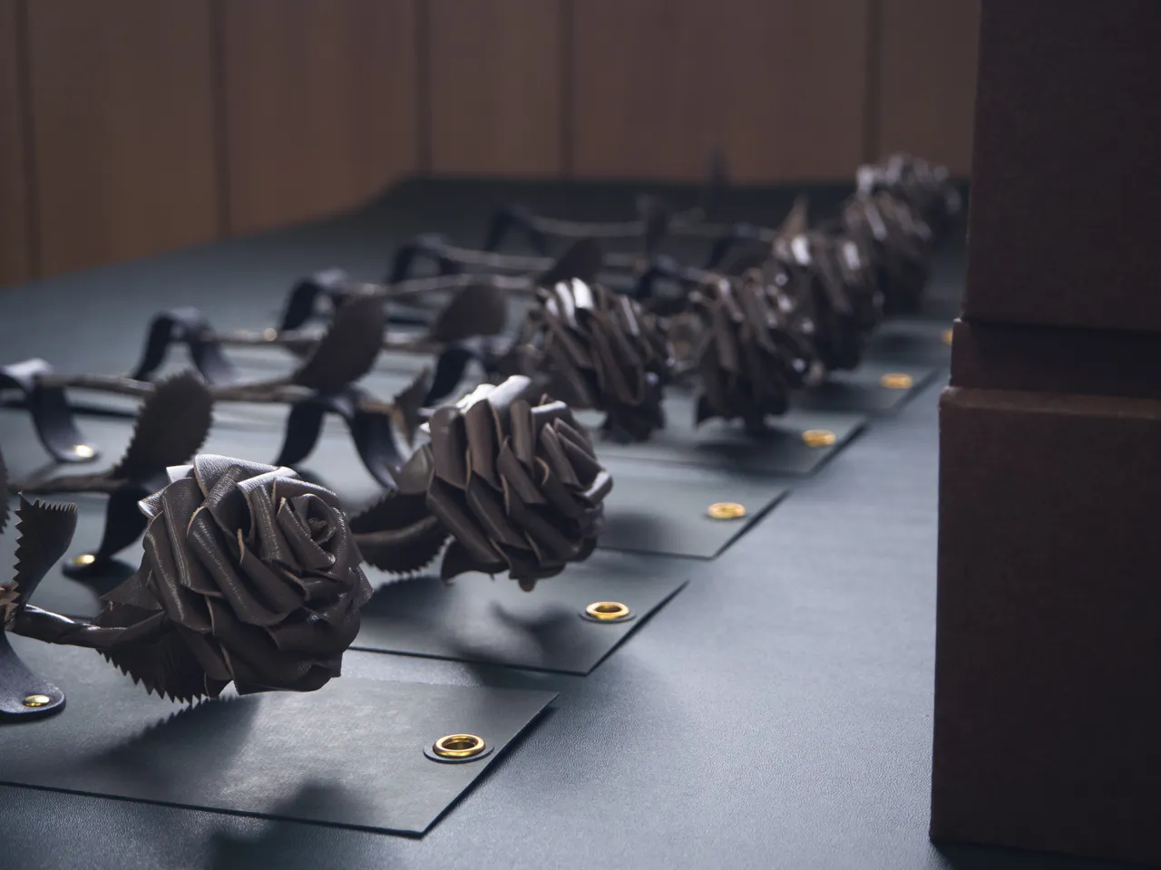 台紙は『レザーローズ』専用に設計され、その美しさを引き立てるために、1点1点丁寧に手作業で製作しています。