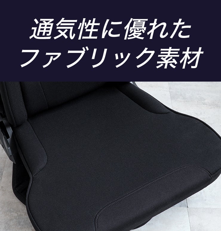 座面と背もたれは通気性に優れたファブリック素材を採用。