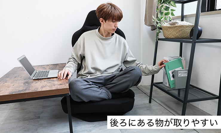 一般的な座椅子は台座がないため、体をひねって物を取った