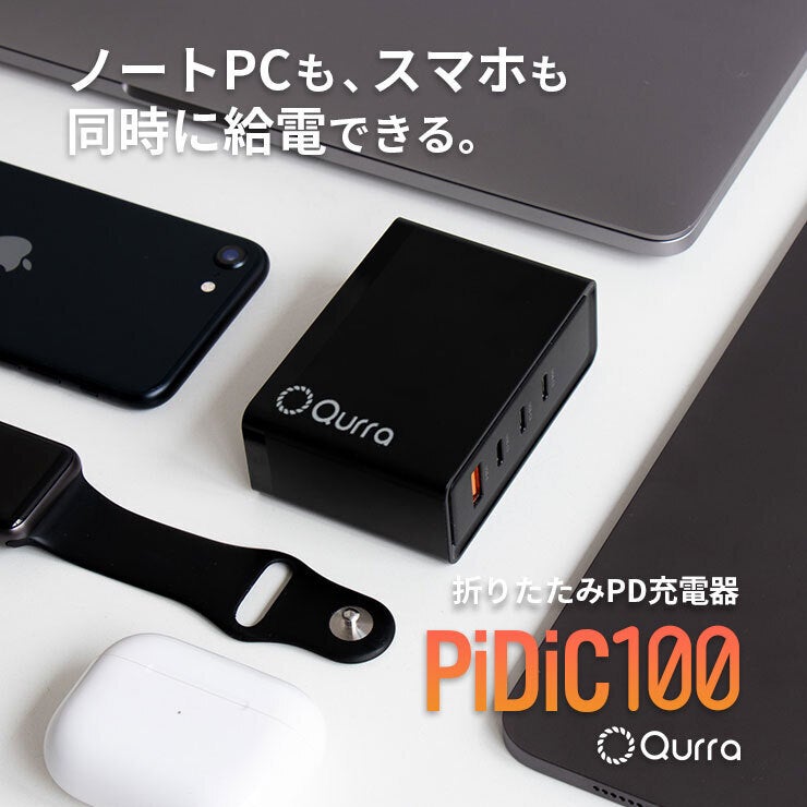 商品名:Qurra PD100W充電器 折りたたみACアダプター PiDiC100