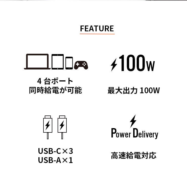 ※USB-C1,C2,C3とUSB-A合わせて最大100Wまで