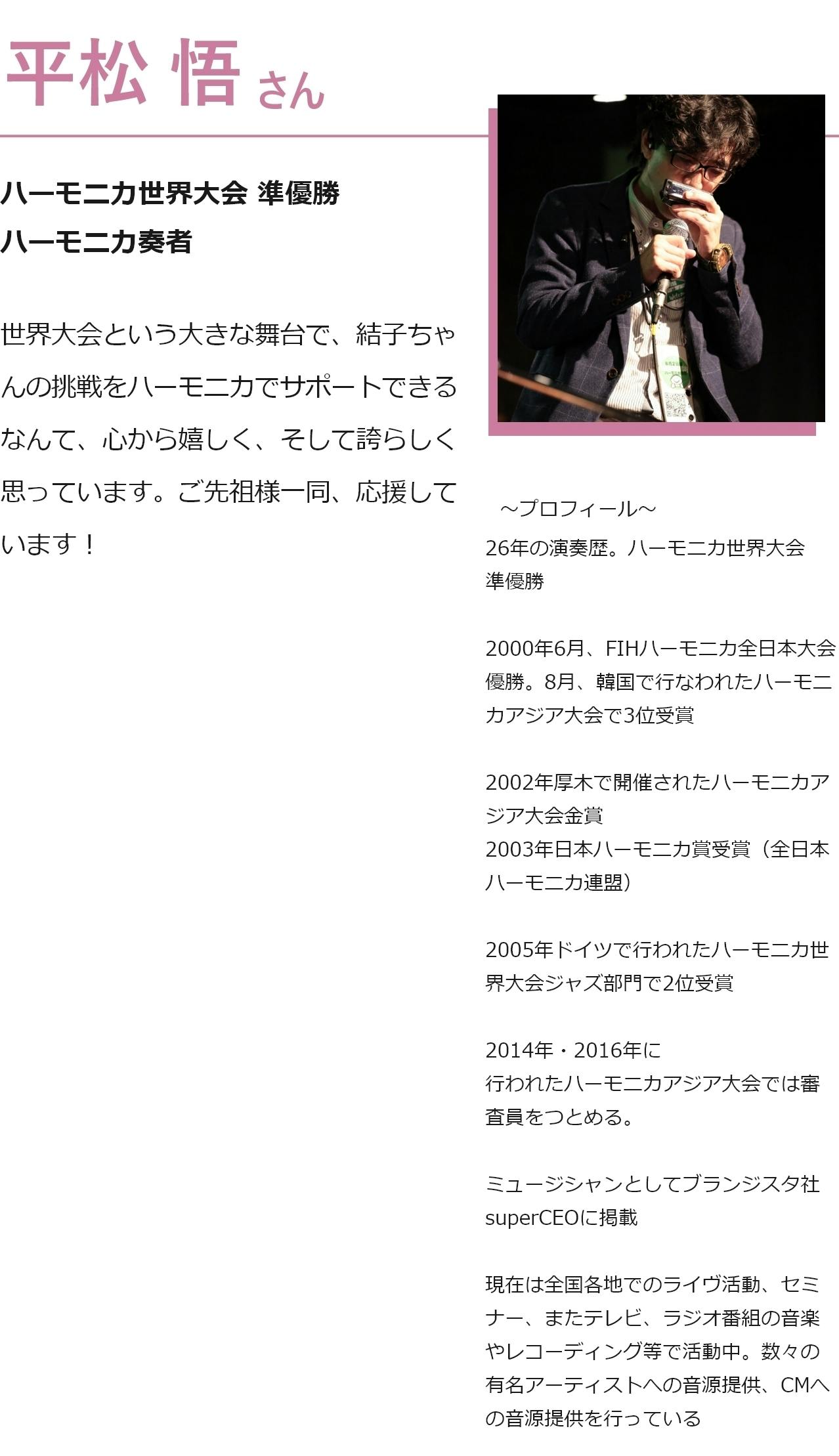 世界大会への挑戦を通じてご覧になっている方に勇気を届けられたらとても嬉しく思っております。
