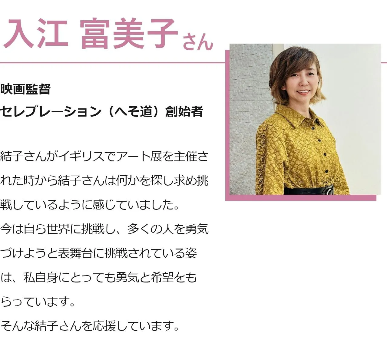 『目の前に起こることは必要な自分の鏡。挑戦する怖さはあるけど、いつだって一番のドリームキラーはわたし。みんなが自分を信じて行動できたらきっと世界が平和になる』