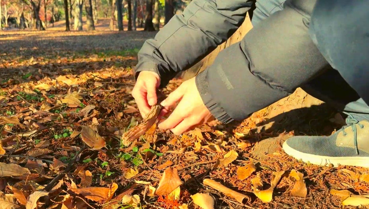 公園で拾った様々な枝で火起こし実験