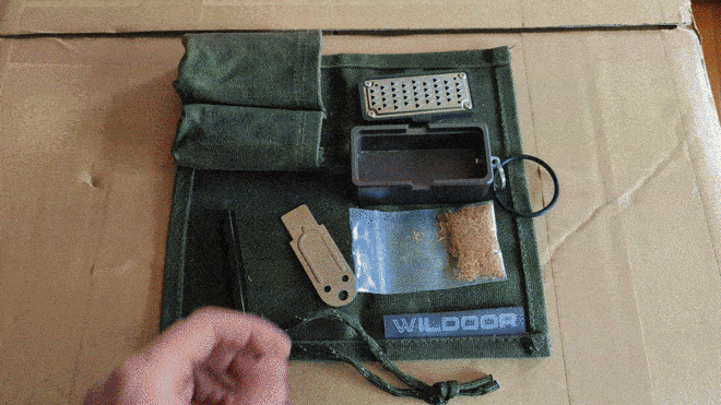 持ち運び時は小物入れとしても使うことができます。 小型のメタルマッチ、ストライカー、小型ジップロックに入れた火口(ほくち)を収めることができ「火の素メーカー」1つ持てば火おこしができます。