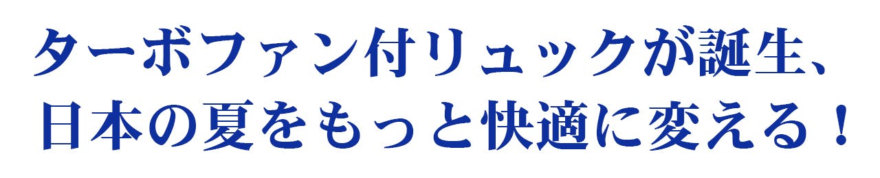 夏場のリュックに関わるお悩みを解決するために本プロジェクトを起案させていただきました。リュックに高性能ターボファン搭載、背中に持続送風して夏でも快適な背負い心地を実現します。今までになかった新感覚のクールリュックをこの夏にぜひ体験しましょう!