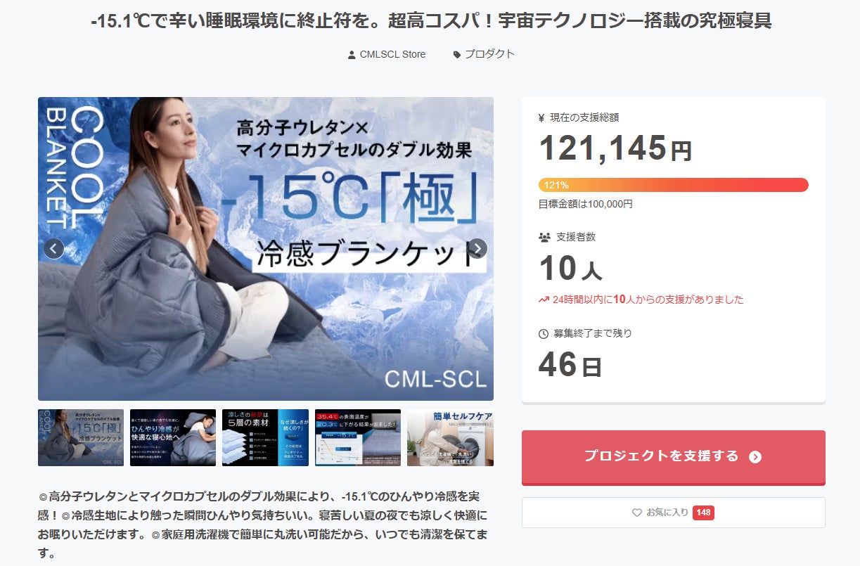 サポーターの皆様こんにちは、「-15.1℃極冷寝具」プロジェクト運営チームです。14日に始まったプロジェクトが、皆さまの多大なるご支援のおかげさまで、連続3日でプロダクト部分に入賞できました!心より感謝を申し上げます。最強コスパを誇るハイスペックの極冷3点セットは、最大50%OFFで13,000円からご購入頂けます。3点セットリターンは数量限定になっており、ぜひお見逃しなくお早めのご利用をおすすめいたします!引き続きプロジェクトのシェア・拡散にご協力お願いいたします!