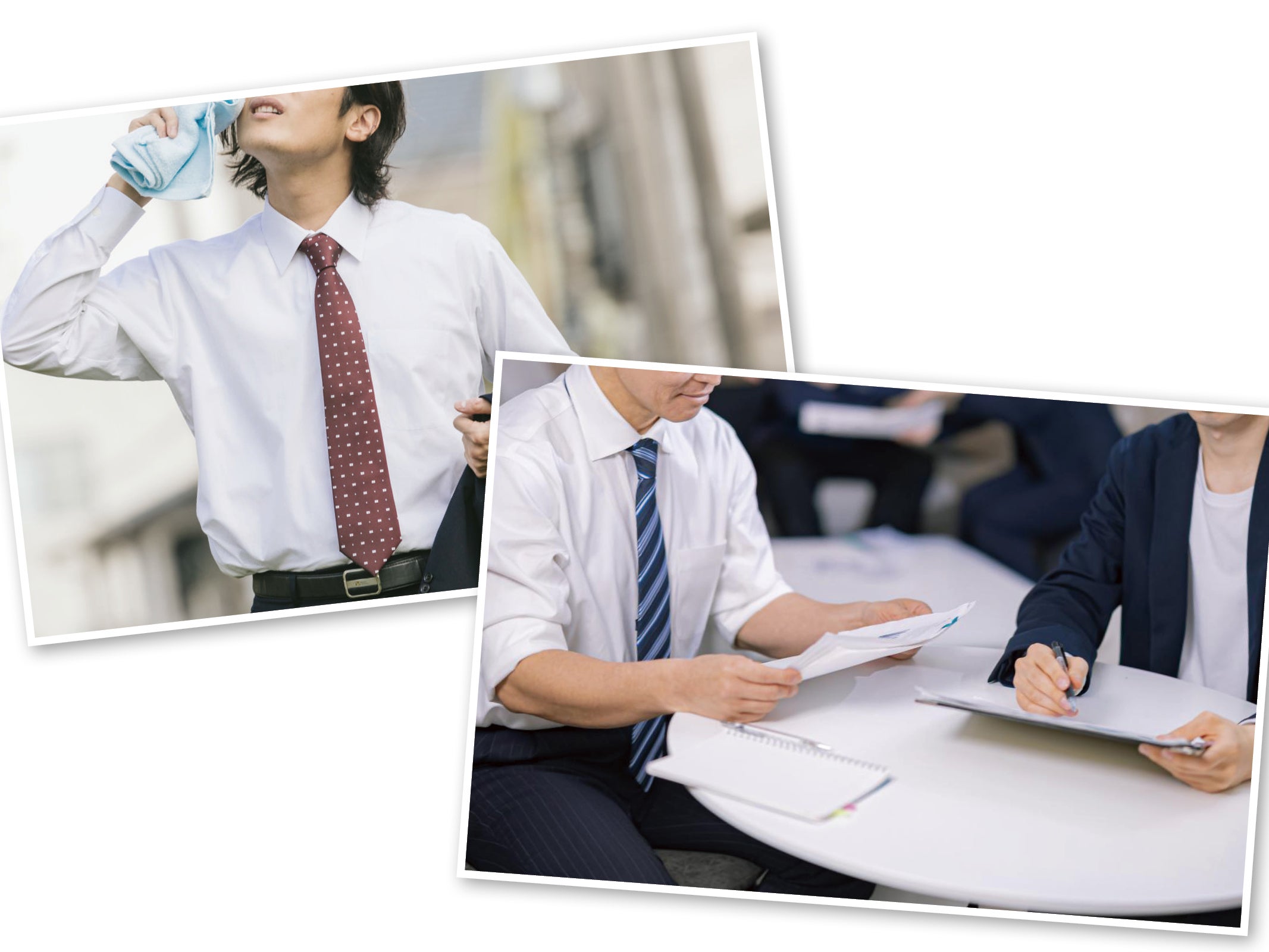 外回りでどうしても上着を着用しなければいけない時などに、ぜひご活用ください。