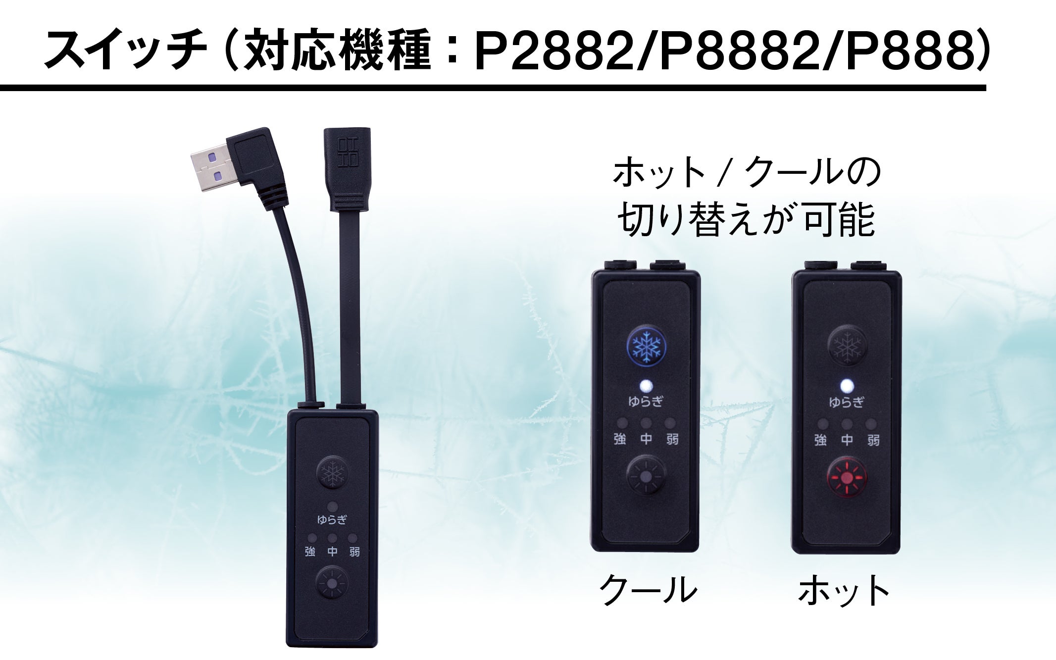 ペルチェデバイスのスイッチは、1つで冷暖どちらも対応。