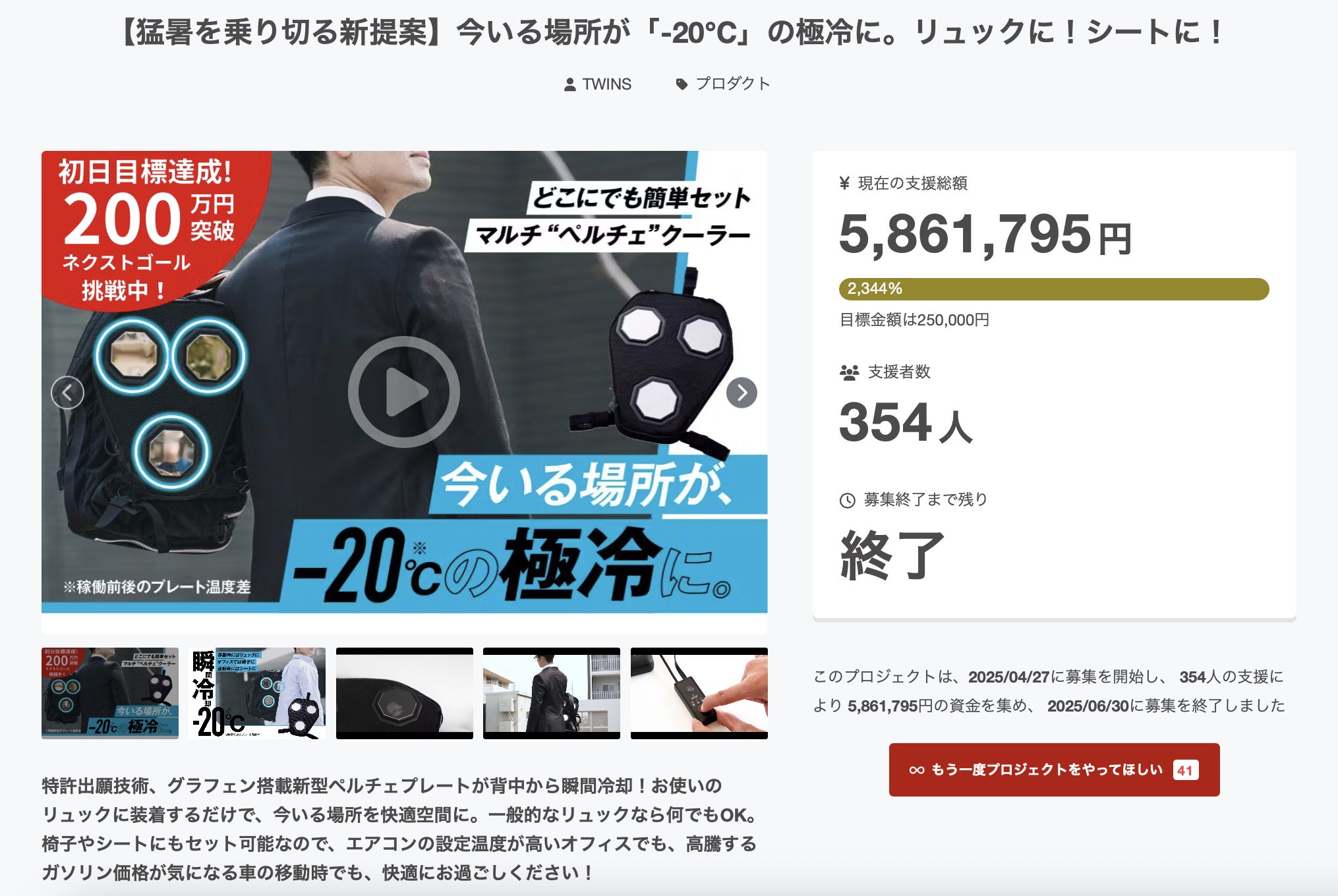 このたびは、マルチペルチェプロジェクトに温かいご支援を賜り、誠にありがとうございました。