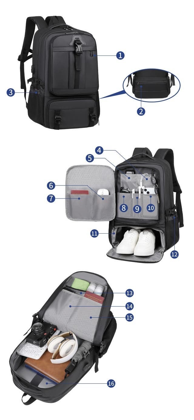 チェストベルトと人体工学S形科学的な荷重の肩ヒモを採用。360°ぴったりとフィットするサラウンド。肩と背中の圧力を効果的に分散させ、驚くほど軽く感じます。しかも肩ずれも防止します。縫い目を補強していますので、重い荷物を入れても簡単に壊れない。蒸れずに快適な3Dメッシュ通気性マット素材を採用し、通気性が良く、水分や汗などを速やかに吸収、拡散させ、快適な使用感を実現します