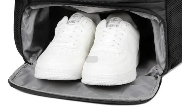 仕事道具と着替え・シューズをセパレートで収納できます。