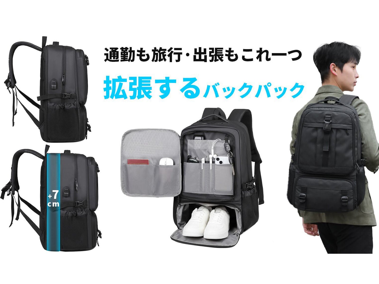 容量拡張が自由にできるので普段の出勤や通学から出張や旅行までシーンを選ばずご使用いただけます。
