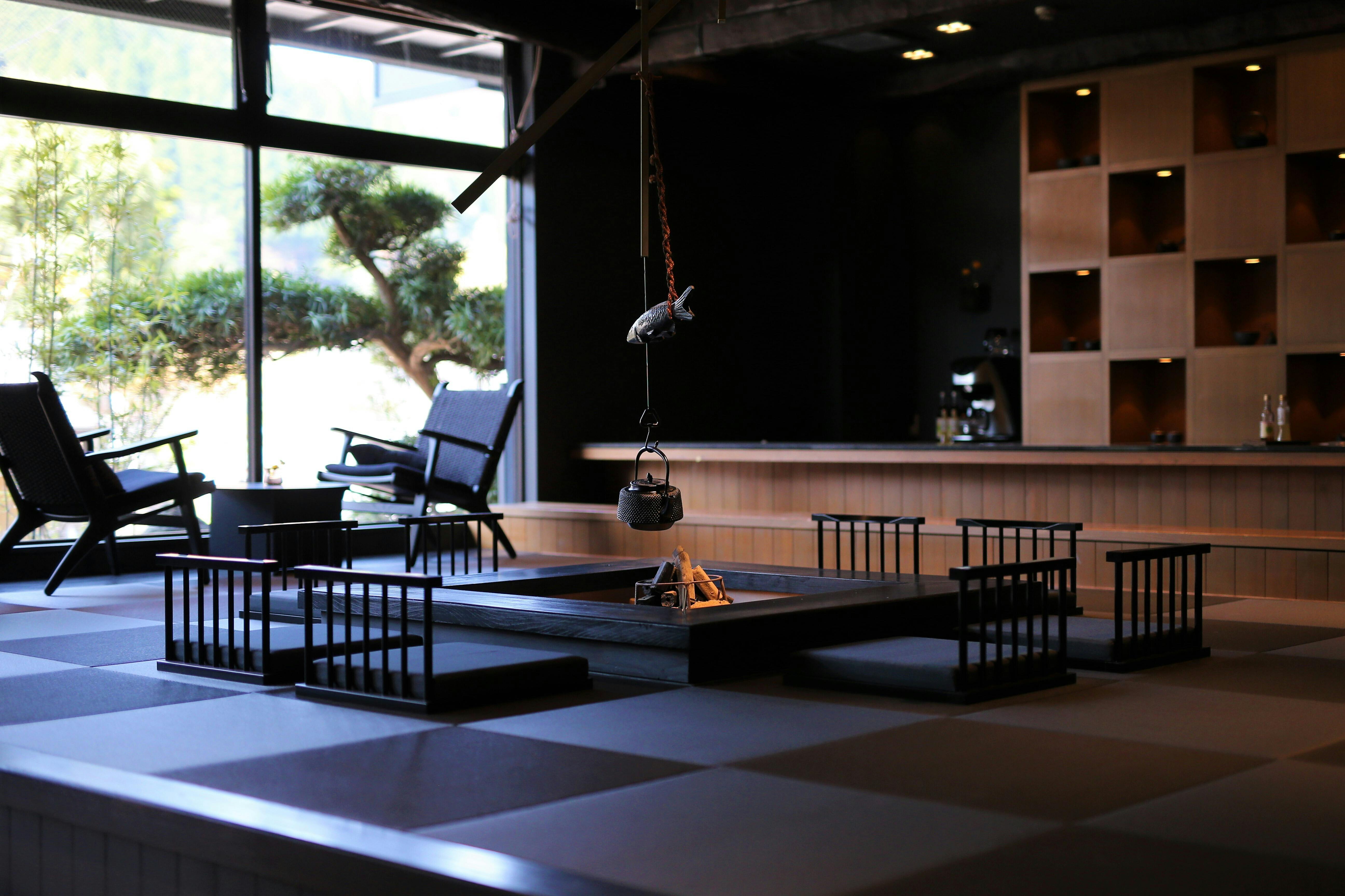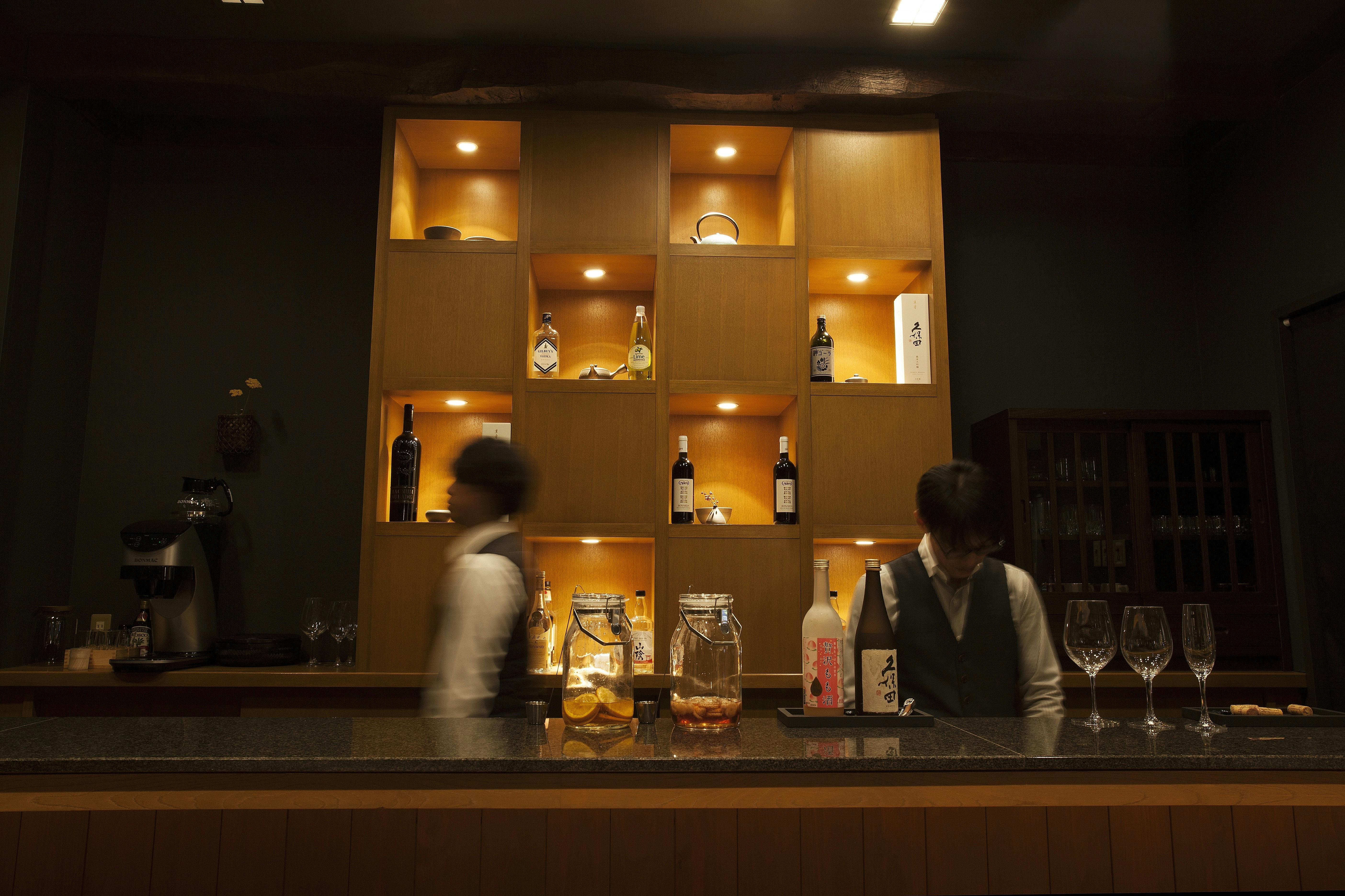 館内の照明はやさしく灯り、喧騒から離れた静けさの中で、心がほどけていくのを感じていただけるよう設計されています。