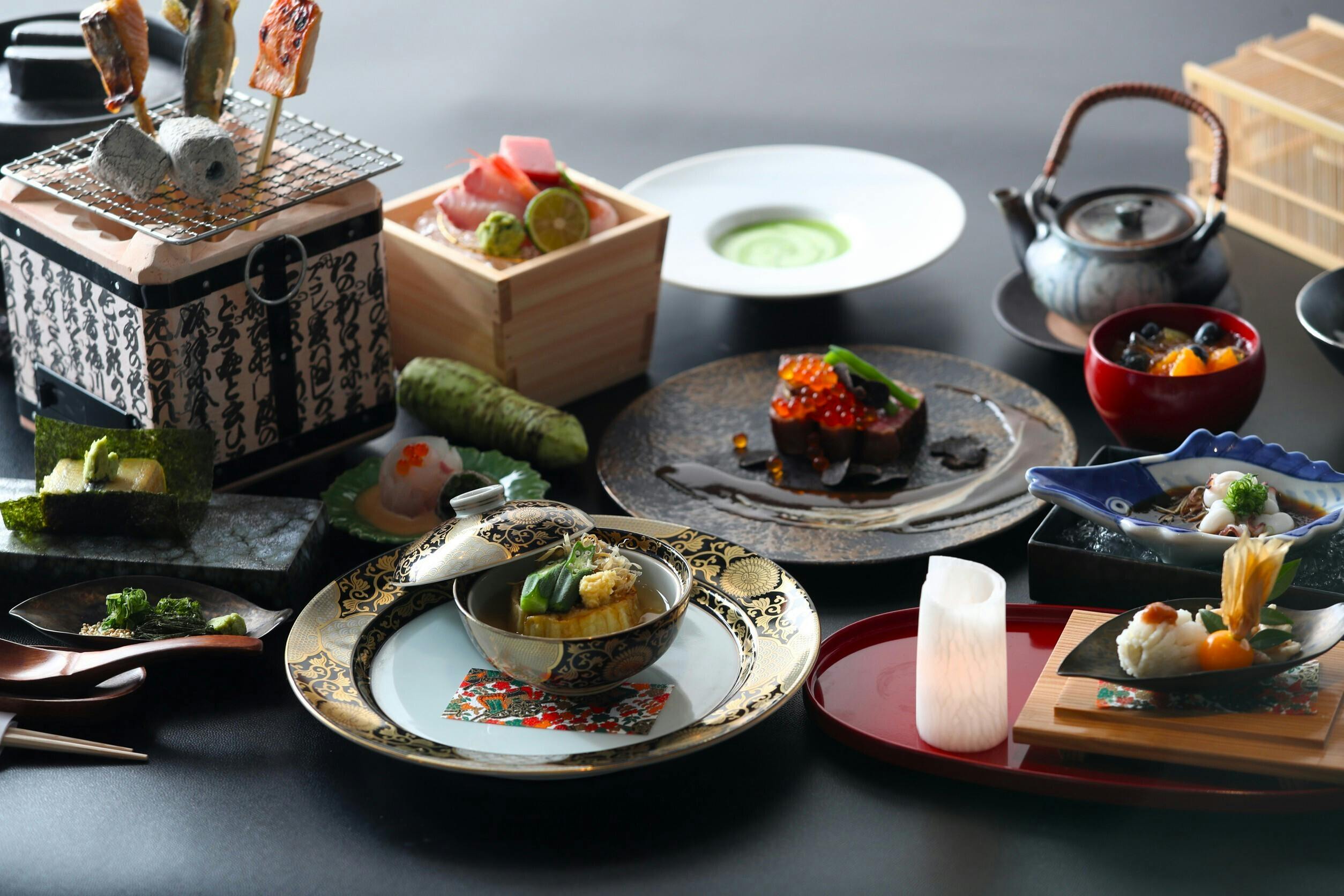 お食事には、山陰の自然が育んだ旬の恵みをふんだんに使った囲炉裏会席をご用意。