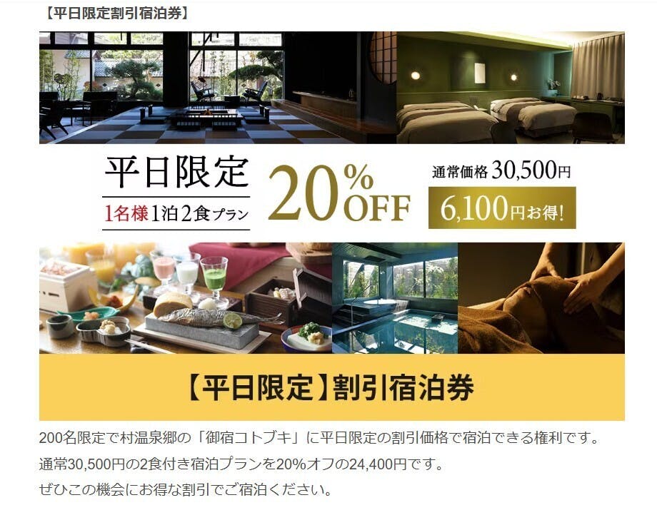 通常30,500円(スイート・ジュニアスイート除くお部屋)が20%OFFの24,400円でご宿泊できる権利です。