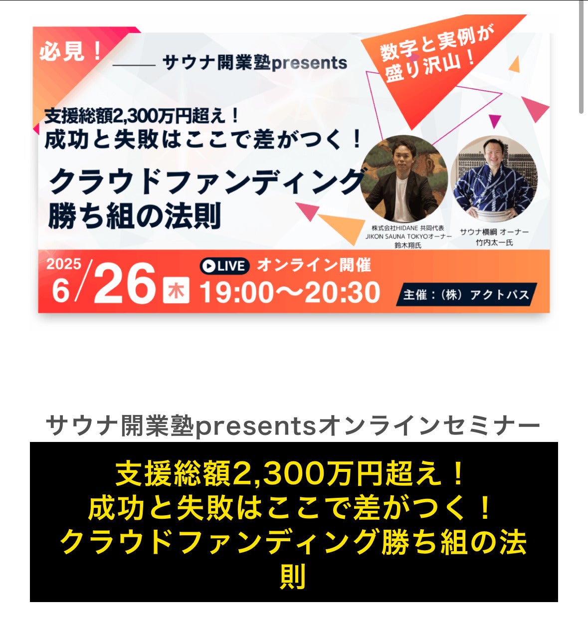 実はつい先ほどまで、「クラウドファンディング成功事例セミナー」を受けていました。もう終わるというのに「何かまだできることがあるのでは」と思ったからです。