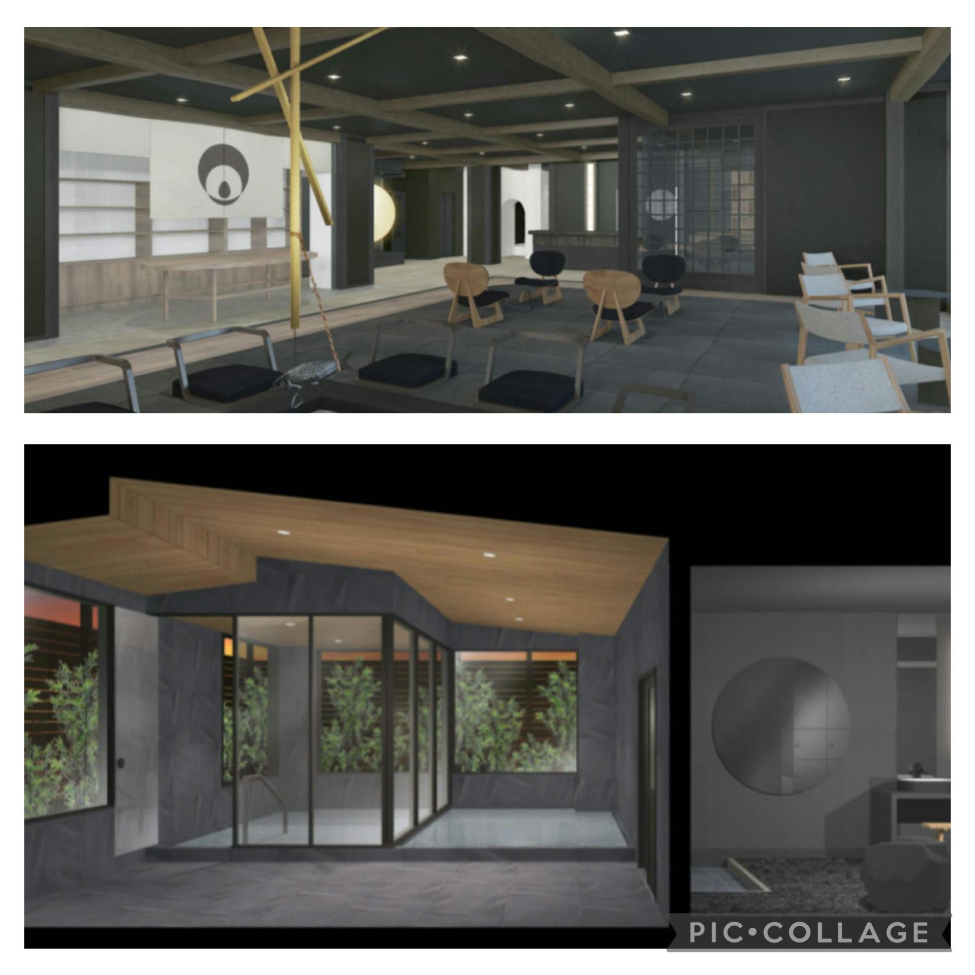 初めての挑戦となるクラウドファンディングも、残すところあと36日となりました。これまで毎日、活動報告を続けてきましたが、最後の1日まで、あきらめずに発信を続けていきます。ご存じの通り、今の御宿コトブキには「露天風呂」がありません。正確に言うと、唯一スイートルーム「市松」にだけ、半露天風呂が設置されています。実は開業前の構想では、御宿コトブキの大浴場を半露天風呂にする予定でした。また、フロント前の囲炉裏ラウンジのスペースも、当初はもっと広く、畳のエリアを広くとる設計でした。ところが、プロジェクトが進む中で、工期が次第に厳しくなり、ちょうど一番大切な時期に雪のシーズンが重なってしまいました。このままではオープンに間に合わないかもしれないという、切羽詰まった状況に。しかし、各種の許認可や申請はすでに“オープン日ありき”で準備を進めていたため、オープンを遅らせるわけにはいきませんでした。間に合わせるにはコストもかさみ、自分達が本当にやりたかったことを、すべて形にするのが難しくなっていったのです。そこで、できる限り「やりたいこと」を諦めずに、コストを抑えるためのVE(バリューエンジニアリング)を実施。チーム全体で何度も議論と試行錯誤を重ねた結果、もともと構造上の過重の問題で実現が難しかった「大浴場の半露天風呂」案と、「囲炉裏ラウンジのスペース拡大案」を見直し、現在の形に落ち着くことになりました。結果的には、囲炉裏ラウンジは現在の形で良かったと思っています。ただ、やはり…心残りなのは「大浴場の半露天計画」です。「もしあのとき実現できていたら…」と、今でもふと思うことがあります。でも、過ぎたことを悔やんでばかりいても、何も変わりません。だからこそ今回のサウナプロジェクトでは、屋上に、たとえ小さくても露天風呂を設けて、あの時叶えられなかった想いを、今こそ形にしたいと考えています。絶対に、屋上サウナと露天風呂をつくります。そのためにも、引き続きクラウドファンディングでのご支援、どうぞよろしくお願いいたします。※画像は元々計画していたお風呂と囲炉裏ラウンジのパース図です。ロゴも違う(笑)