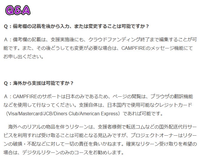 数量限定のリターンに関しては、先んじて確保しておいてから、ゆっくり内容を考えていただいて大丈夫ですので、ご安心くださいませ。