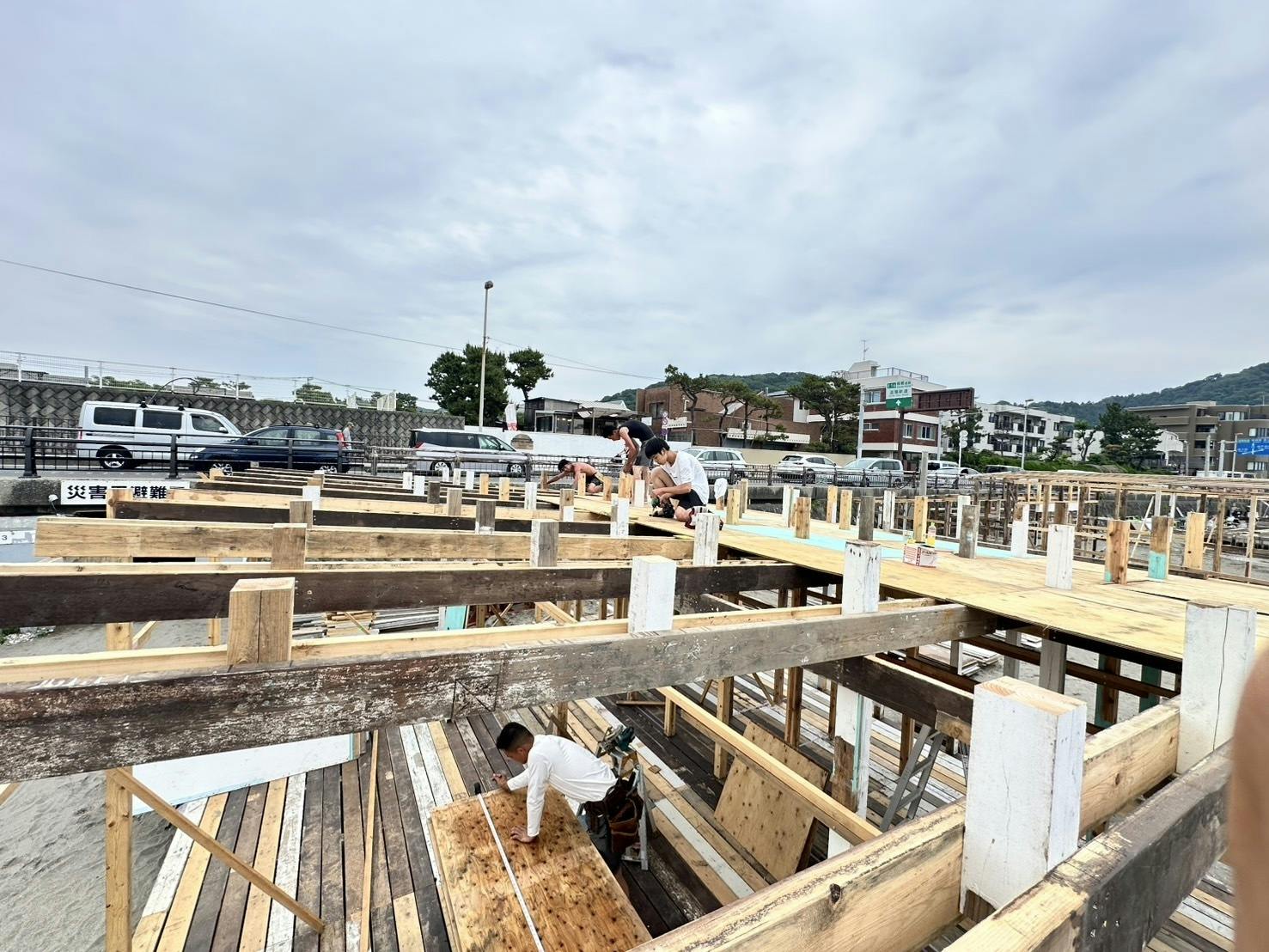 建築終盤!大工さん最後の最後まで細かな微調整や、棚欲しい所ある?など、お声掛け頂き本当に感謝です。何も無い更地から、1階?2階?どんな形?配置は?未経験でわからないことだらけの私達に、本当に丁寧に時間もかけて寄り添って頂きました。本当に本当にありがとうございました。この日も2階からの景色は絶景で、夕日をみてここに至るまでのいろんな事が蘇り言葉にできない感情がこみ上げてきました。オープンまであと僅か!出来ることを精一杯やり、皆様の笑顔溢れる時間、御縁のPUENTE(架け橋)になれるよう頑張ります!2025年6月27日(金)〜8月31日(日)逗子海岸海水浴場『PUENTE seaside house』