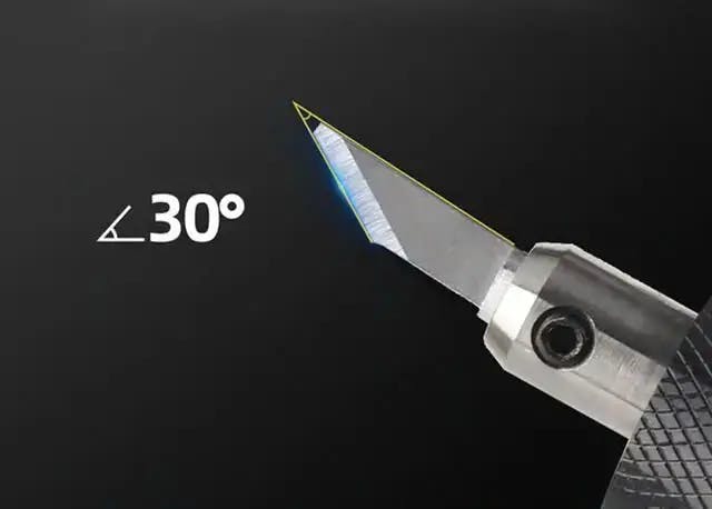 Hanboost C1のもう一つの大きな特徴は、高速振動によって駆動される超音波カッターです。これにより、30°の鋭い刃先が実現され、切断の深さと範囲を正確にコントロールすることができます。細かい作業でも、刃先が鋭いため、非常にスムーズで精密な切断が可能です。