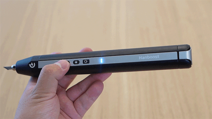こちらがコードレス式超音波カッター「Hanboost C1」。公称スペックでは最大40,000回/秒という高速振動で最長2時間使えるのが特長です。
