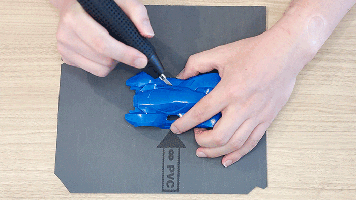 カーブがあるプラモデルも軽い力で肉抜きに成功。本体はちょっと太めですがペンと同じ持ち方で使えるので、細かい部分の操作性も良かったです!〉