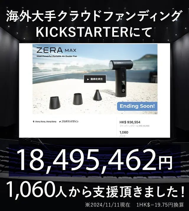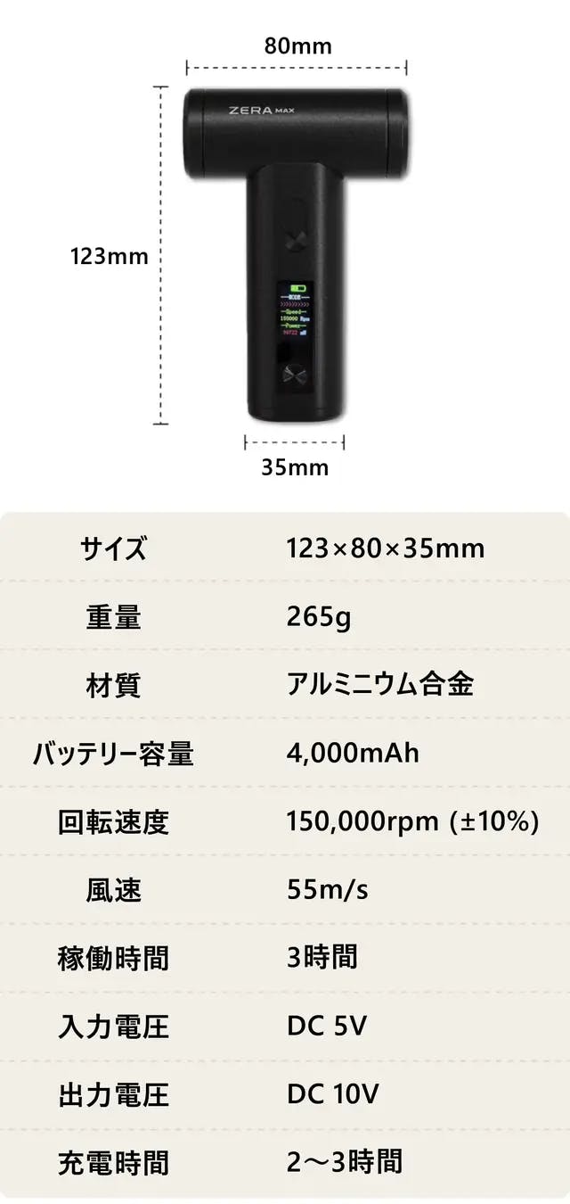 ZERA MAXはコードレスエアダスターでありながら「150,000RPM」を実現!