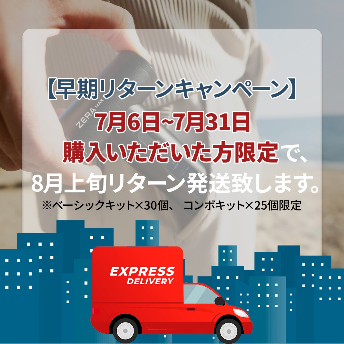 今回は、早期リターン期間を7月31日まで延長し、商品の発送は8月上旬になることが決定しました! !