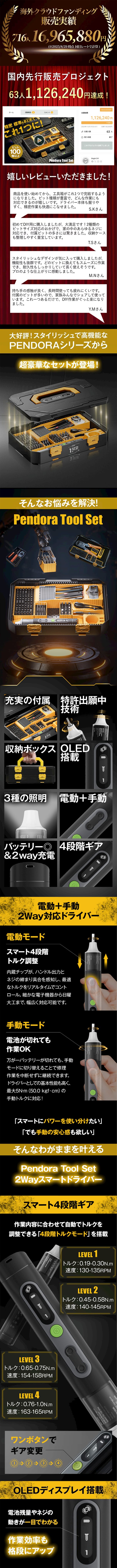 今回は皆さまに「2種のビットサイズ対応!高機能ドライバーと充実の超豪華な付属セット【PENDORA TOOL SET】スタイリッシュなPENDORAシリーズに登場」プロジェクトを紹介させて頂きます。