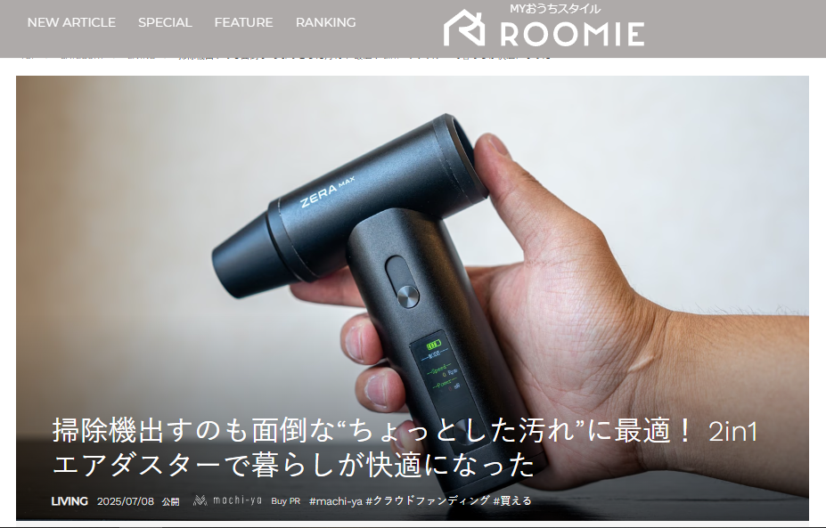 皆様、こんばんは!Brightチームです。7月8日、Roomieで「ZERA MAX」を紹介して頂きました。話題:掃除機出すのも面倒な“ちょっとした汚れ”に最適! 2in1エアダスターで暮らしが快適になった興味がある方、是非下記のリンクからアクセスしてみてください。https://www.roomie.jp/2025/07/1545999/【レビューの一部抜粋】〈強風も弱風も便利「ZERA MAX」の最大風力は55m/s。起動すると勢いよくモーターが回り、パワフルな風を発生。落ち葉の掃除やホコリ、洗車後の水滴飛ばなどに活躍してくれます。ホコリが溜まる代表格のキーボード。キーキャップの隙間をピンポイントで狙えるので快適でした。ガス式のエアダスターだとすぐに威力が落ちるので、パワーと持続力を兼ね備えた電動式からはもう戻れませんね!車やバイク、自転車などの洗車後水滴飛ばしにも最適。自然乾燥だと水シミやウォータースポットになるので、筆者的にはすごく助かりました。なお、最大風量時のモーター/ファン音は掃除機レベルでうるさいので、静かにする必要がある場所での利用はご注意を。〉ご興味のある方はこの機会をお見逃しなく!https://camp-fire.jp/projects/840912/view7月31日まで販売期間は続きますので、ぜひSNSでのシェアや身近な方にもおすすめしていただけると嬉しく思います。#zeramax#brightdiyどうぞよろしくお願い致します。BRIGHTチーム
